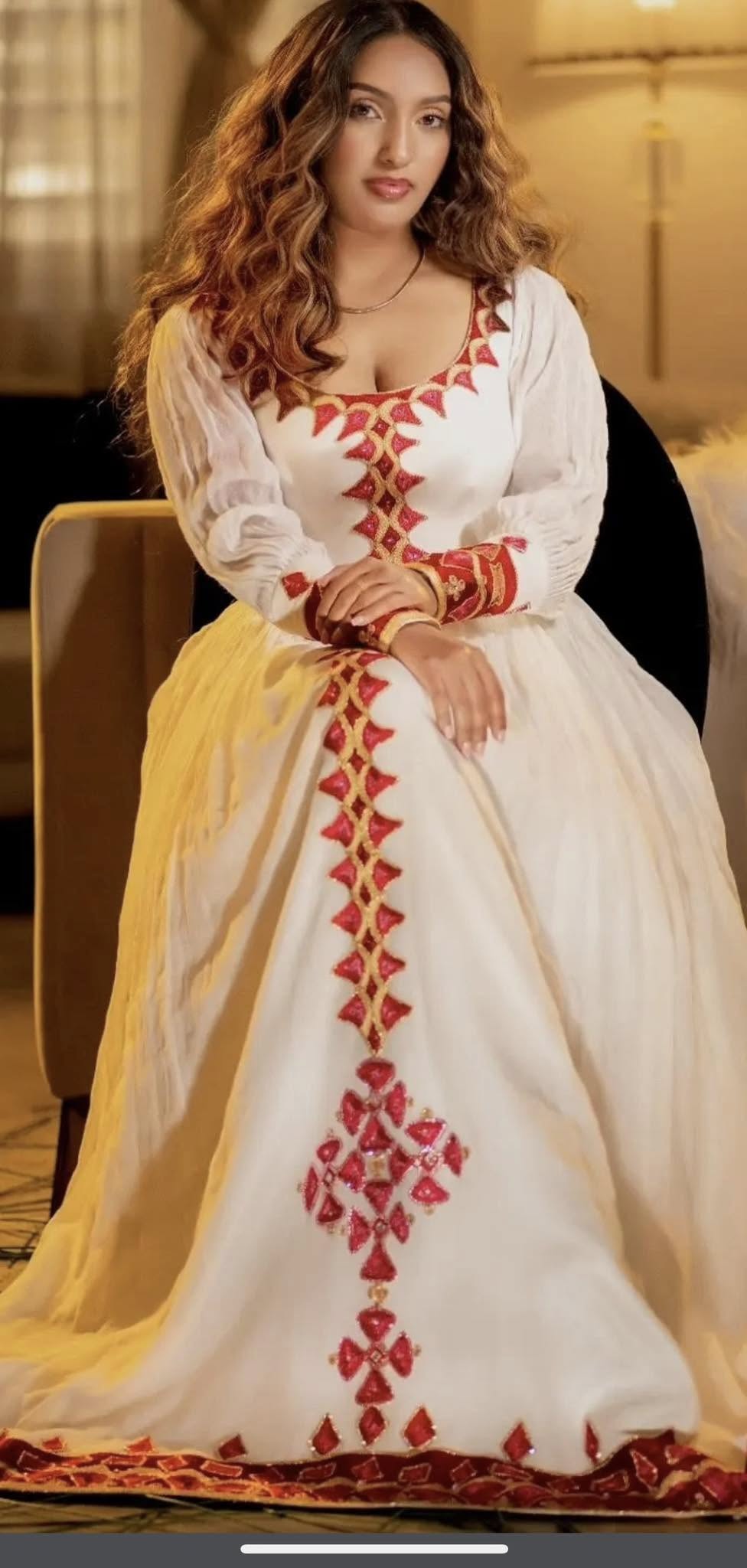 Celebrate your roots in style! This soft, breathable dress features intricate handmade borders that represent Ethiopian artistry and pride.