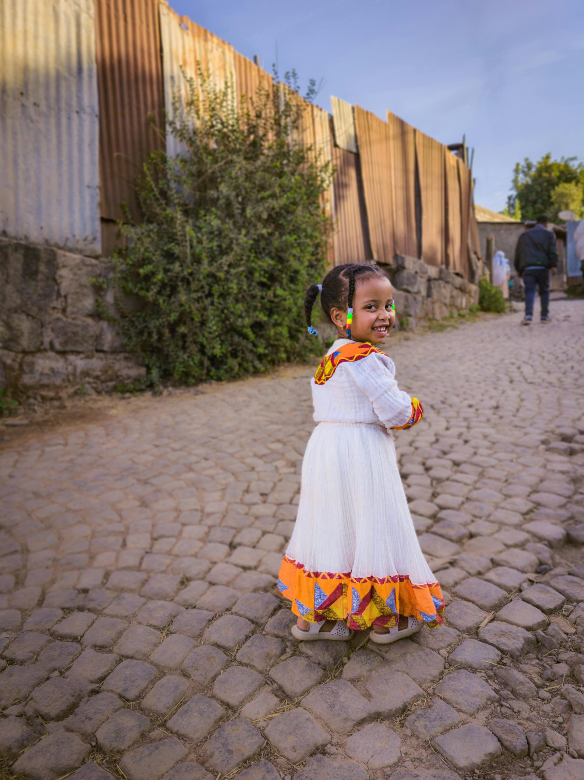 Made with soft, handwoven cotton and colorful tibeb borders, this adorable dress lets your little one shine with Ethiopian pride at any celebration.