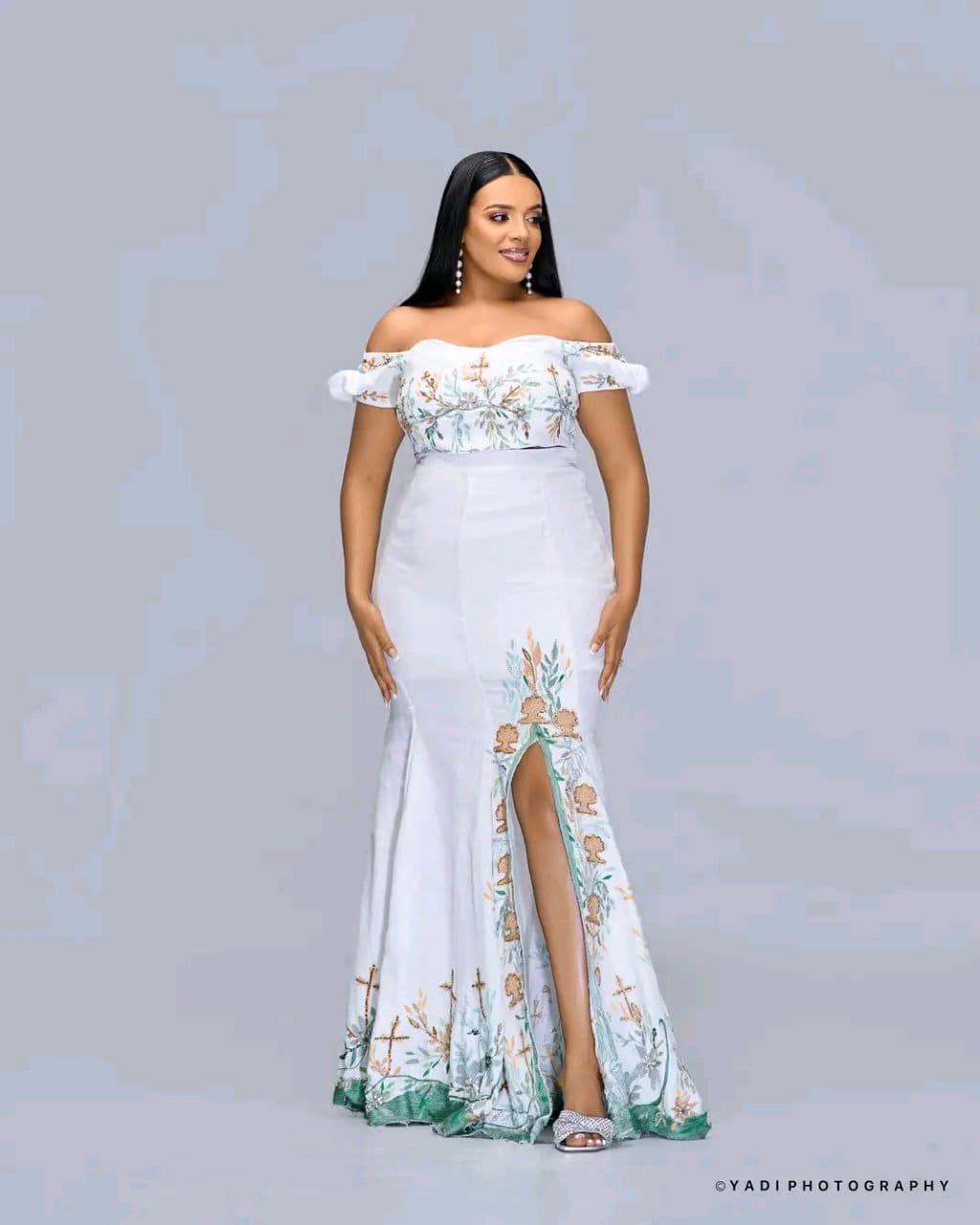 A blend of tradition and modern design, this dress features fine embroidery and a flattering silhouette — ideal for weddings, graduations, or festive events.