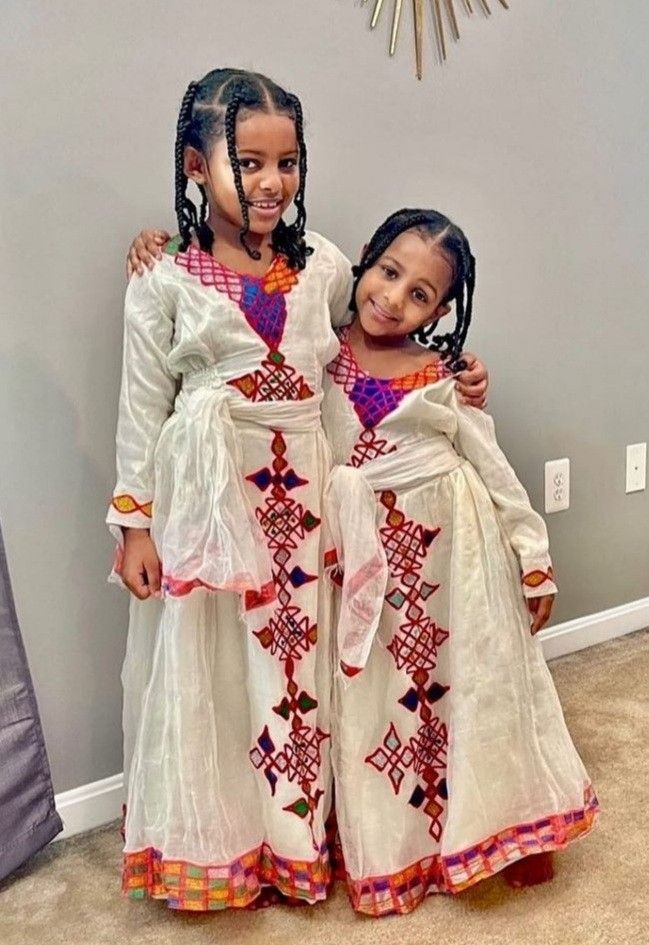 Made with soft, handwoven cotton and colorful tibeb borders, this adorable dress lets your little one shine with Ethiopian pride at any celebration.